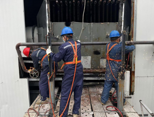 磨煤换热器是热电厂制粉系统的关键设备,直接影响燃煤研磨效率与后续锅炉燃烧供热稳定性。近期,由于原有的磨煤换热器管束腐蚀老化,漏汽严重,换热管束已封堵5组,换热效率大大降低,为解决设备换热效率下降问题,兴华热源主动攻坚,全面启动磨煤换热器更换工程,以设备焕新筑牢冬季供热“安全屏障”。